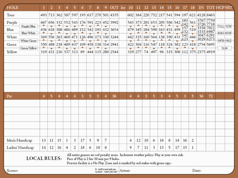 Want the full layout at a glance? Our official scorecard offers a complete overview of yardages, pars, and handicaps for all 18 holes at RainDance National. It’s your quick reference for planning strategy—and tracking your best round yet.